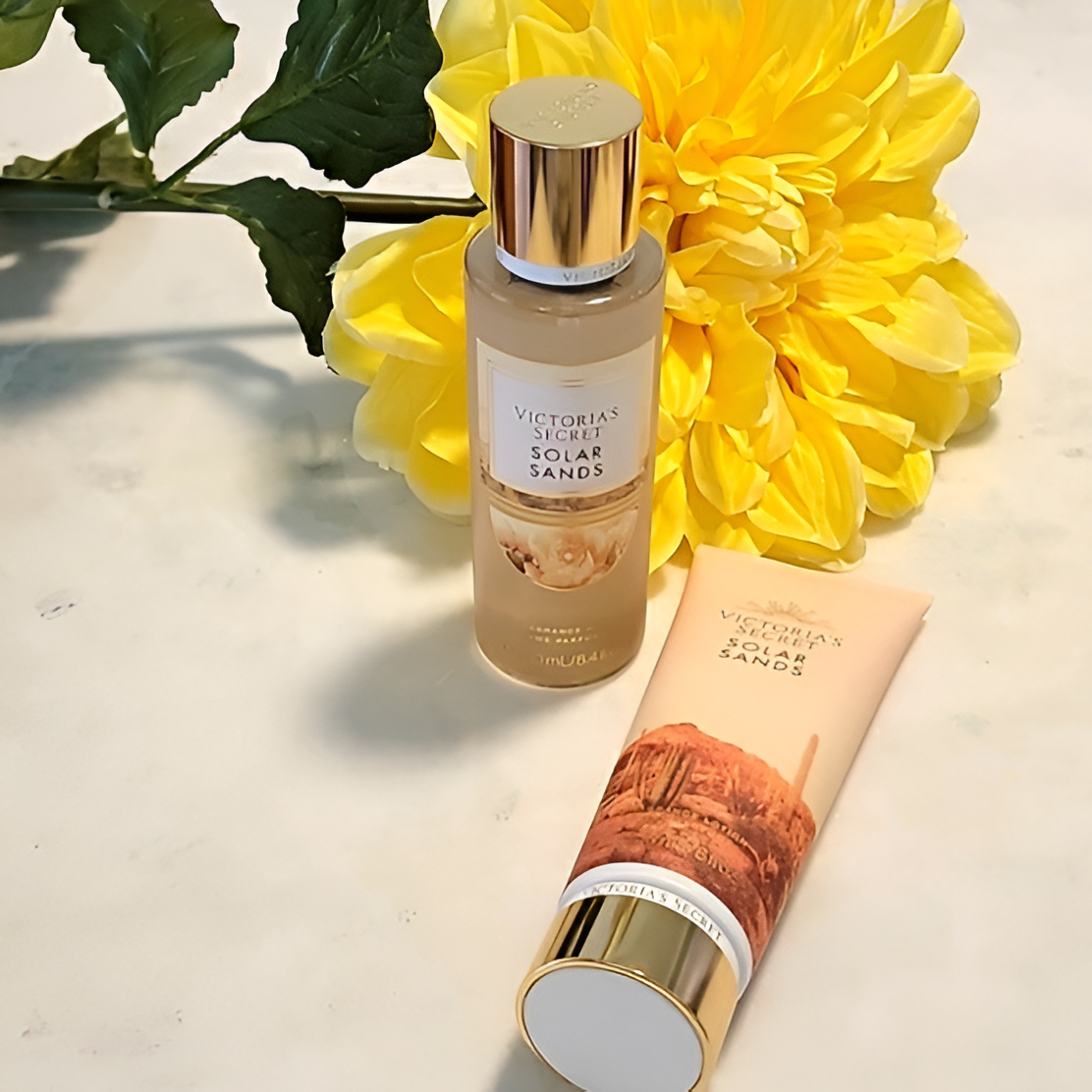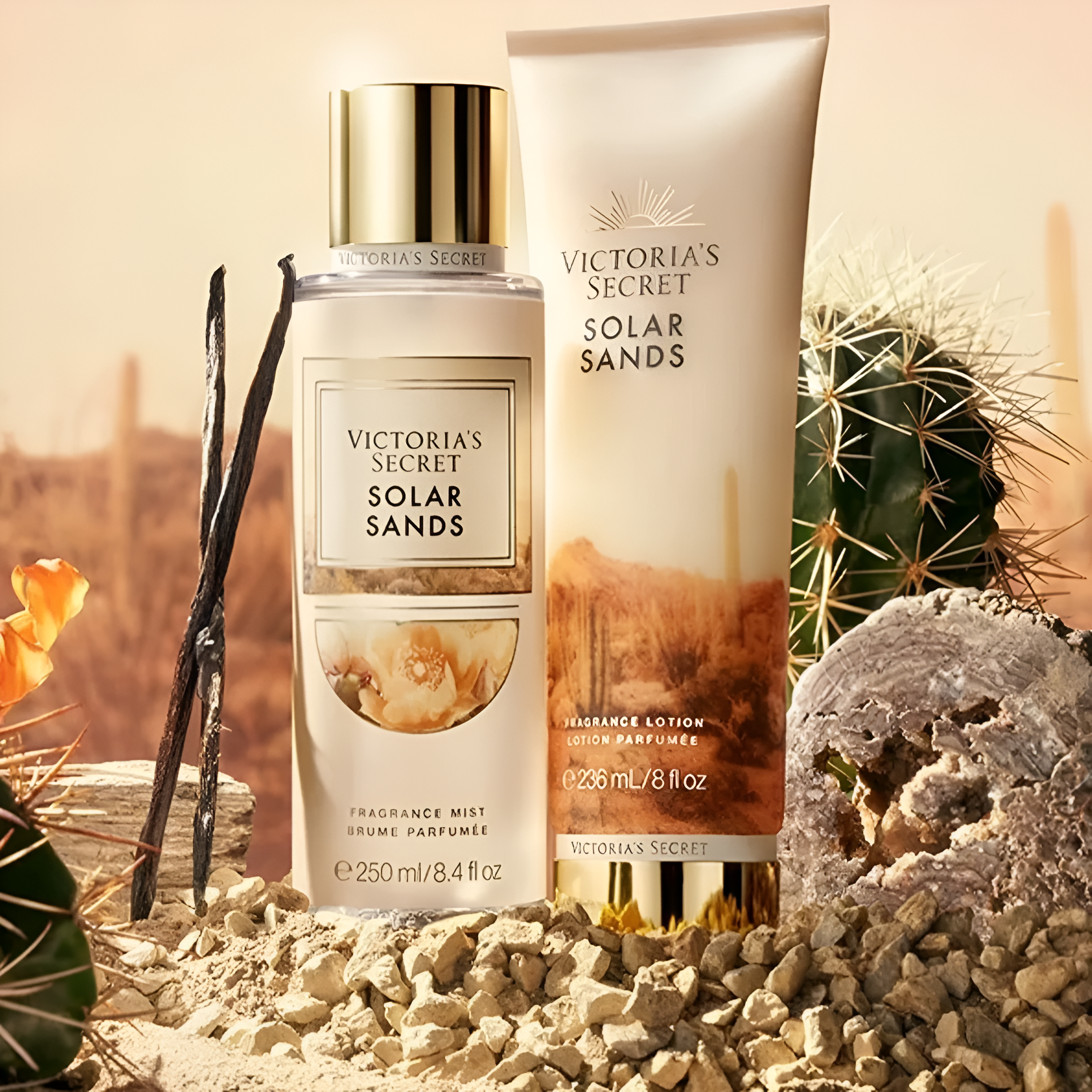 Embark on an olfactory journey with Victoria's Secret Solar Sands Body Mist, where desert wonders beckon.