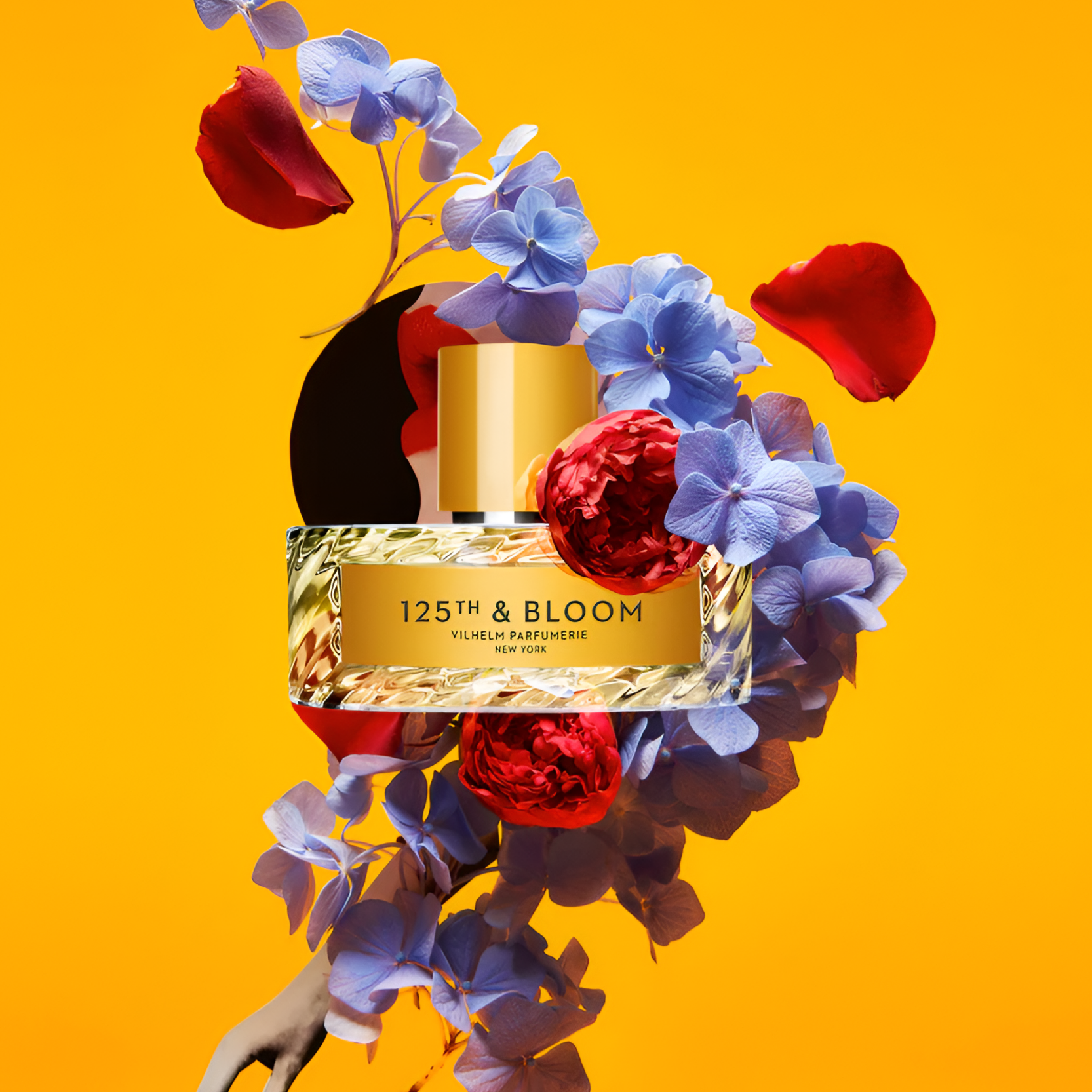 Vilhelm Parfumerie's 125th & Bloom EDP smells of saffron and angelica, with a floral heart of violet and damascena rose, evoking Harlem's vibrant sophistication.