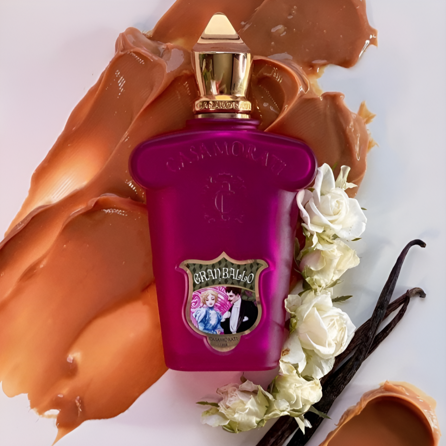 Xerjoff Casamorati Gran Ballo EDP is a sophisticated dance of wild berries and mandarin, intertwined with a romantic heart of honeysuckle and gardenia, all wrapped in a cozy embrace of amber and caramel.