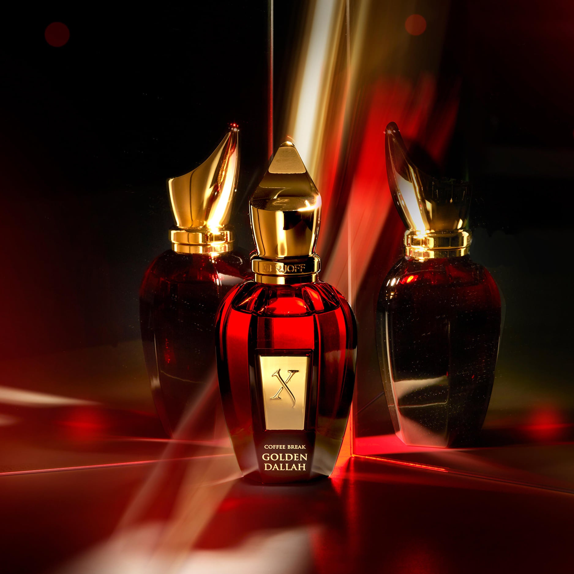 Xerjoff Coffee Break Golden Dallah Parfum envelops you in a luxurious blend of spicy coffee, amber, oud, and floral incense, capturing the warmth and richness of the coffee trade in a single sophisticated scent.