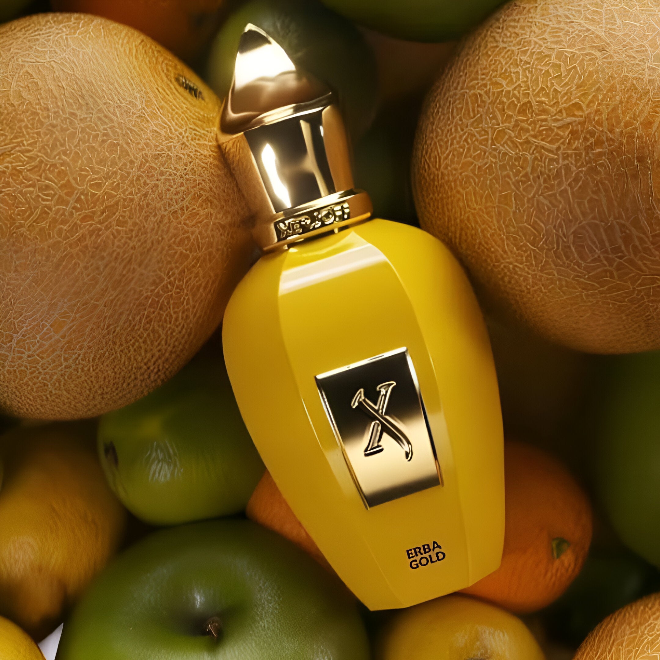 Xerjoff Erba Gold EDP smells like a luxurious blend of fresh citrus, sweet fruits, and warm spices, creating an inviting and vibrant fragrance that's both uplifting and sophisticated.